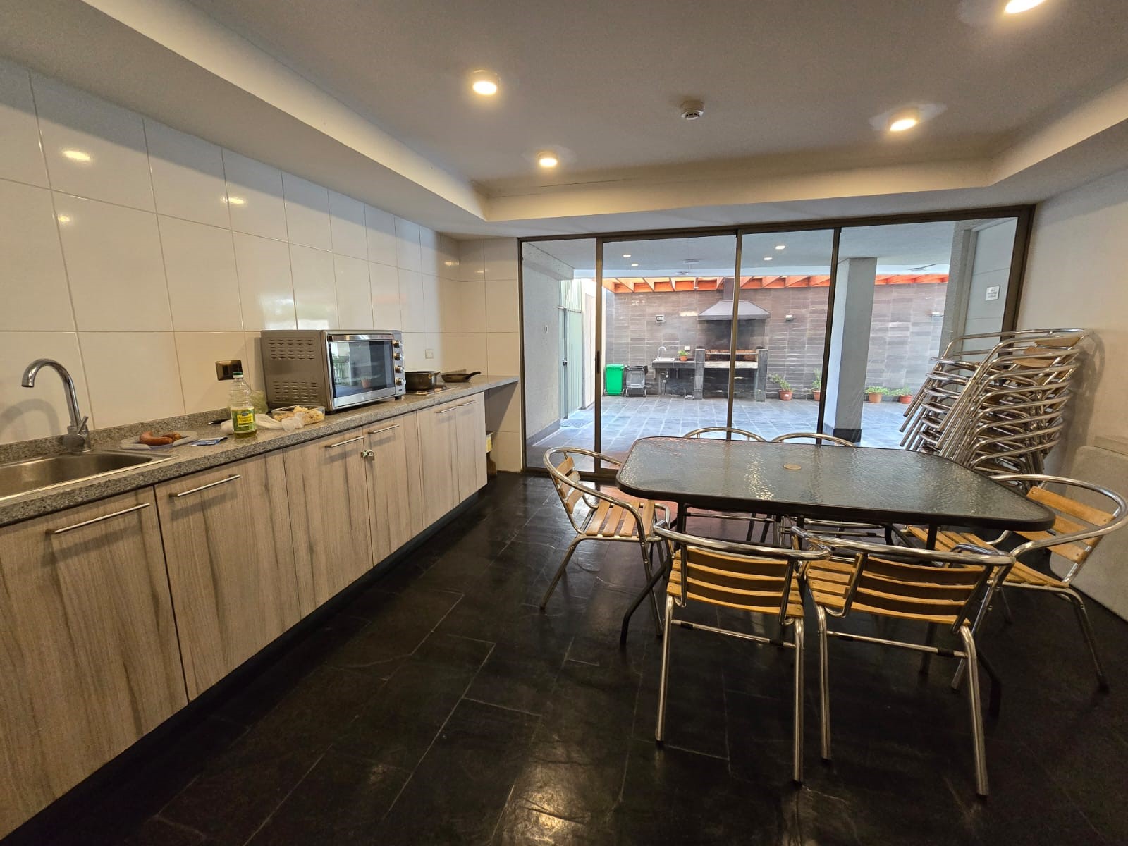 El edificio tiene piscina, sala de eventos, quincho, bicicletero, estacionamientos de visita
